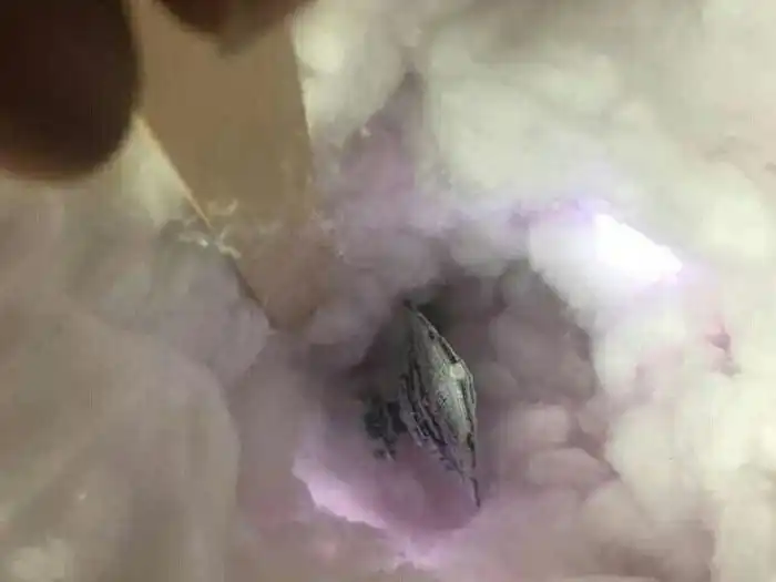На самом деле это маленькая фигурка "Звёздного Разрушителя", обычная вата и немного атмосферного освещения при помощи нескольких светодиодов. Вот так и был сделан этот интересный снимок.