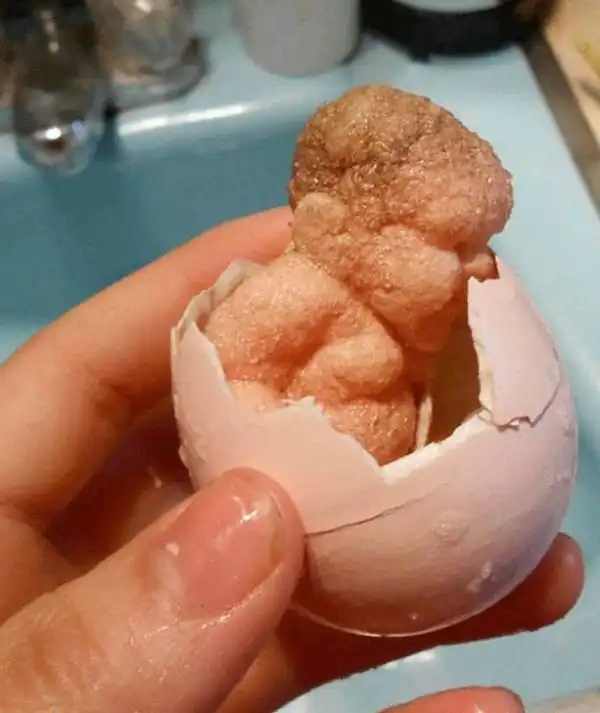 Игрушки бывают очень разными, но этот очередной "шедевр" из Китая точно удивит многих из вас. Всем нам хорошо знакомы игрушки, которые необходимо положить в воду и ждать изменений. Автор этих снимков увидел необычную игрушку под названием "Вырасти ребенка", а в упаковке находилось только яйцо. Он купил его, распечатал и положил в воду, как было указано в инструкции.
