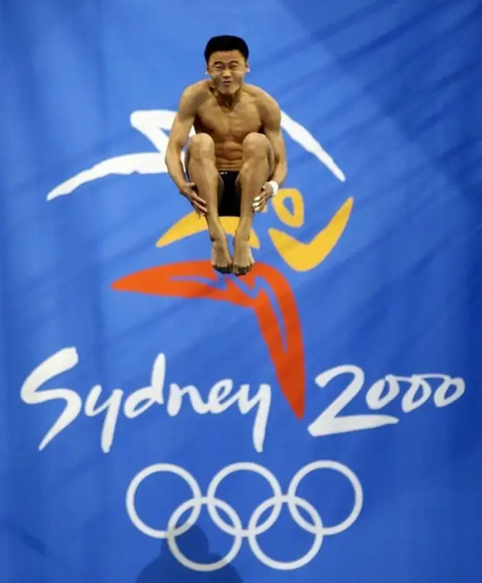15. Прыжок китайского спортсмена Ху Цзя, летние Олимпийские игры 2000, Сидней, Австралия