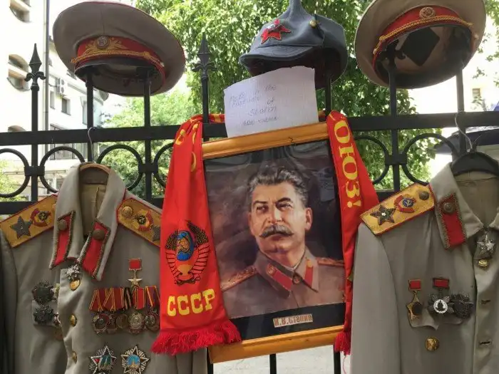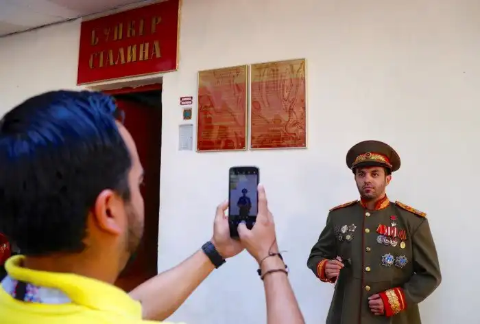 «Фото в костюме Сталина – 200 рублей». Надпись на английском языке адресована иностранцам, приехавшим смотреть футбол в Самару. (Фото David Gray):