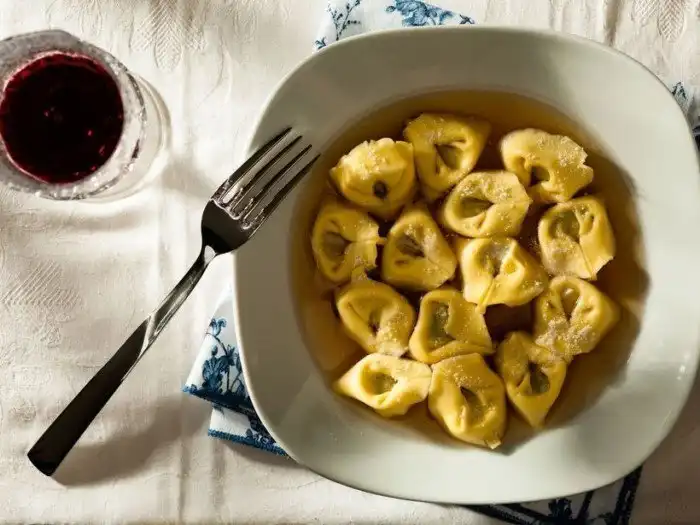 Для многих семей в северной Италии суп с тортеллини является основным блюдом, особенно на праздники. В отличие от привычных тортеллини, подаваемых со сливочным соусом, эти плавают в простом домашнем курином бульоне с добавлением небольшого количества пармезана.
