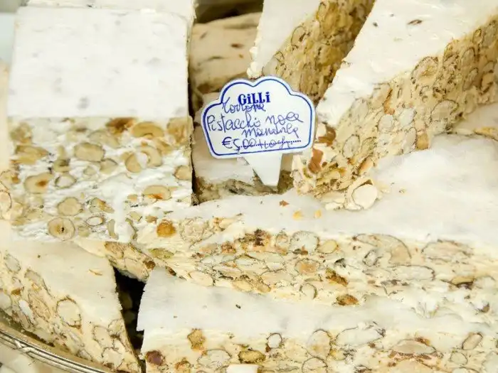 Происхождение торроне несколько размыто. Одни говорят, что это блюдо появилось в Ломбардии, другие настаивают на сицилийских истоках. Но это не столь уж важно. Главное, что, когда вы едите эту кремовую, тягучую, похожую на нугу конфету, сделанную из меда, яичных белков, жареных орехов и цитрусовой цедры, ваши вкусовые рецепторы приходят в восторг!