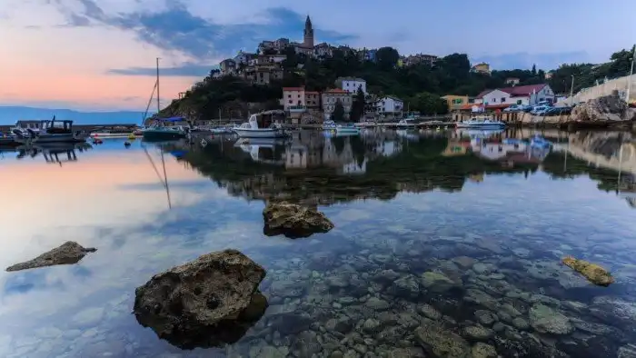 Как и другие города-замки на острове, хорватский городок Врбник расположен высоко, в пятидесяти метрах над морем, на скале, которая отвесно уходит в воду.