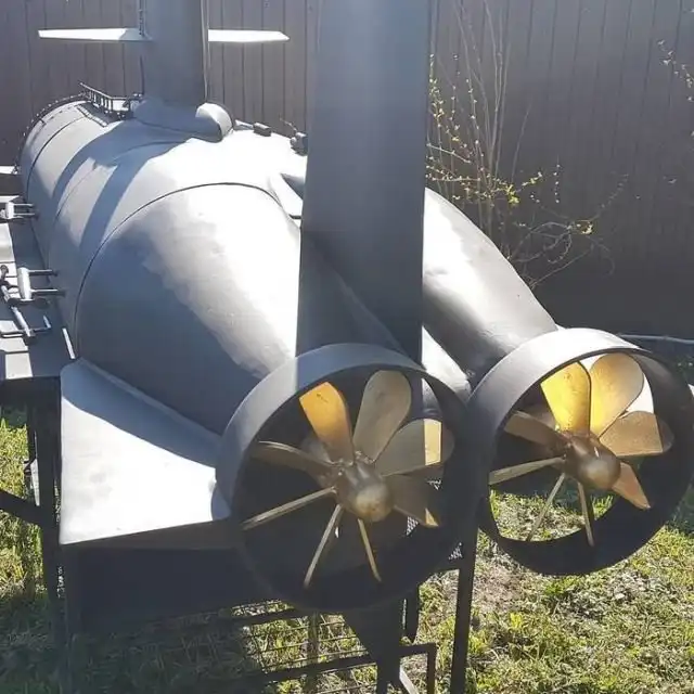 Если вы всегда мечтали о функциональном гриле, то этот пост вам точно придется по душе. Гриль для стейков, несколько вертелов для курицы, отделение для копчения мяса, да и вообще, что может быть круче, чем гриль в виде подводной лодки?