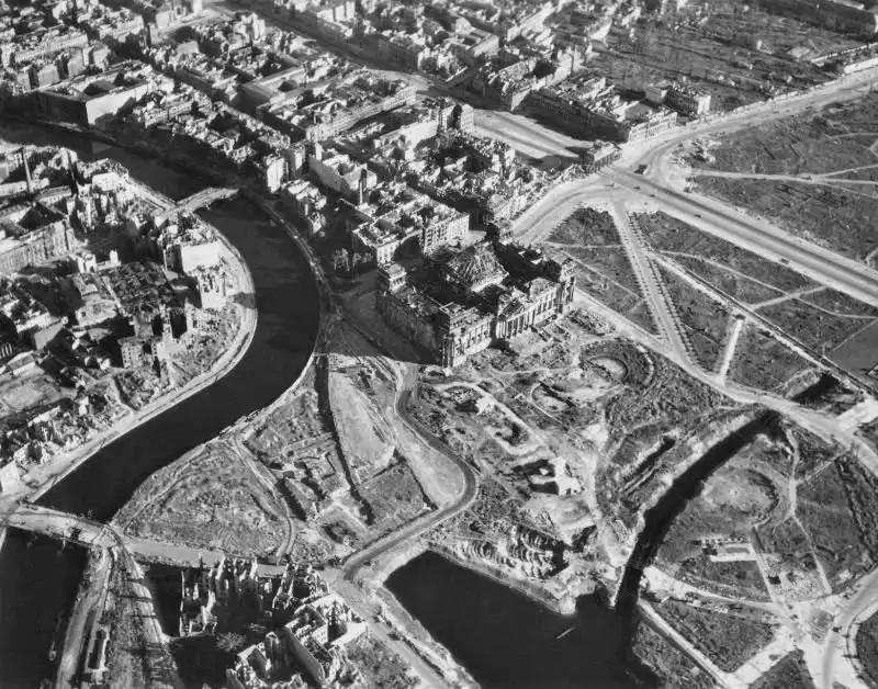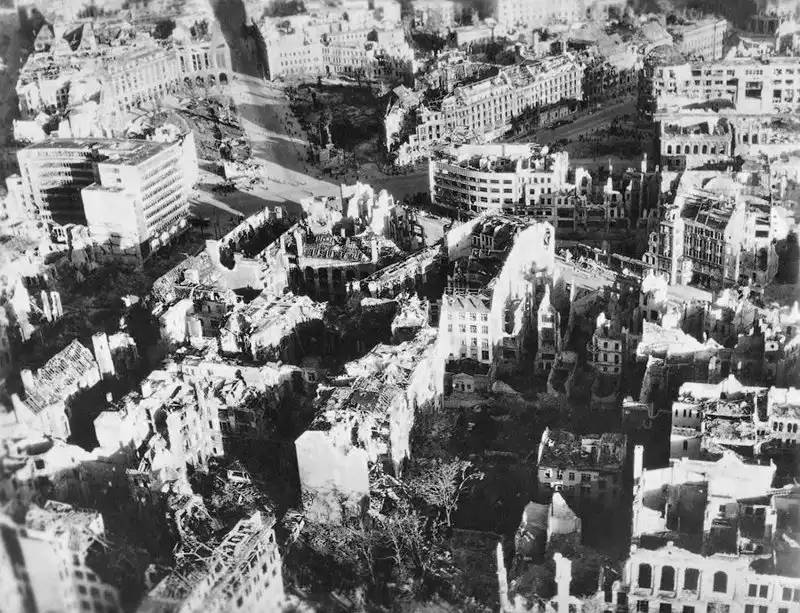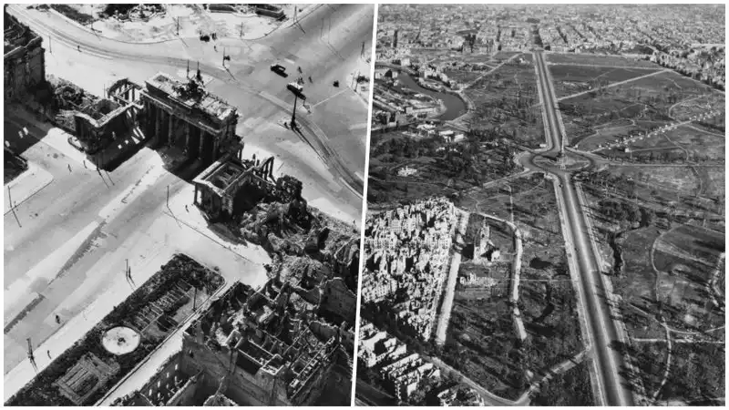 В 1945 году немецкая столица после ожесточённых боёв была разрушена практически полностью. И это не преувеличение. Фотографии из этой подборки, сделанные с высоты птичьего полёта, показывают, насколько сильно пострадал город и что от него осталось к концу войны.