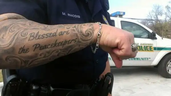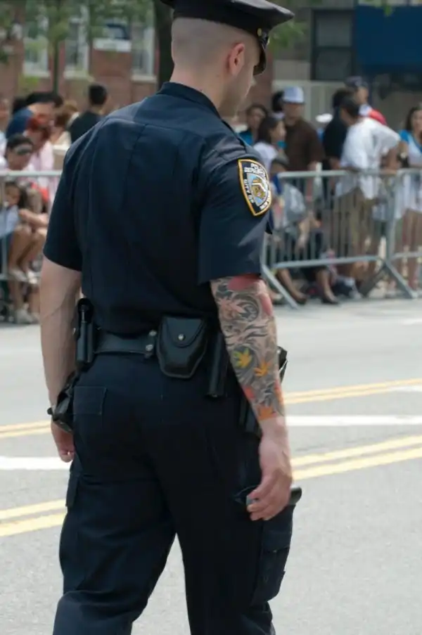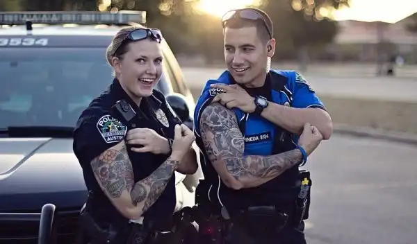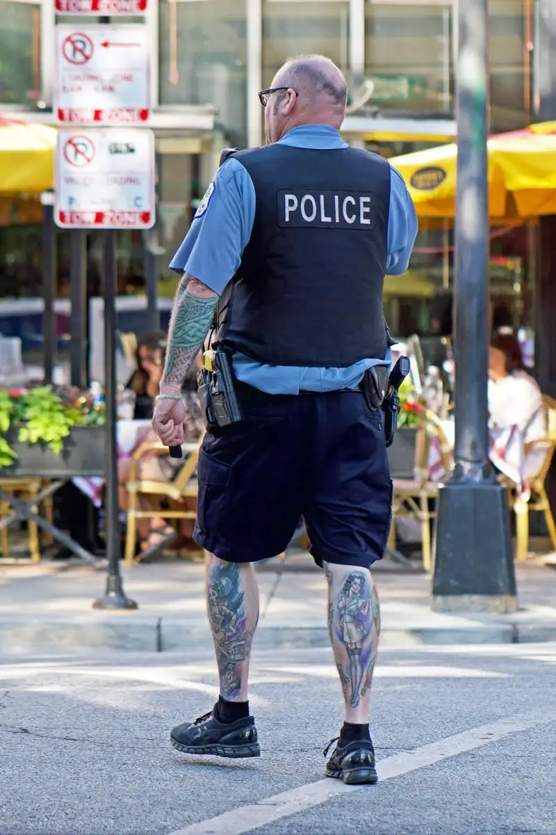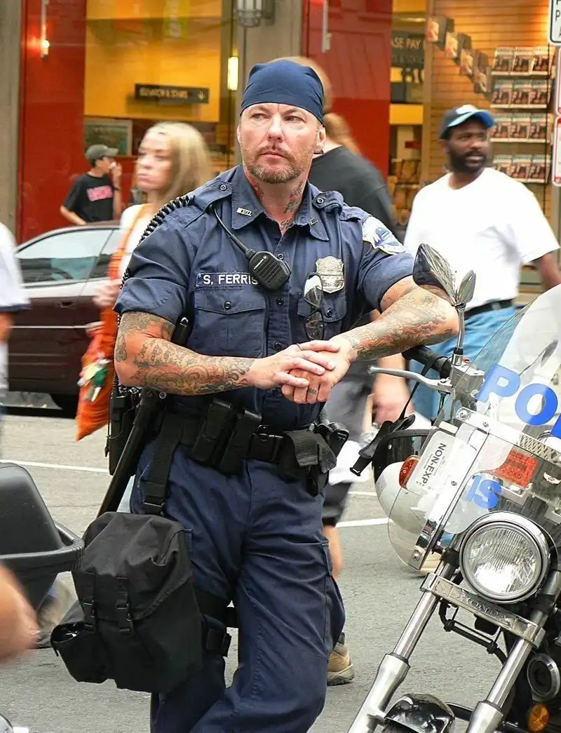 Всё у них не как у людей в этой Америке: дороги ровные, тротуары чистые, законы работают, а полицейские ходят с татуировками. И что самое интересное: никого это не волнует. А люди наоборот с такими полицейскими ещё и фотографируются.