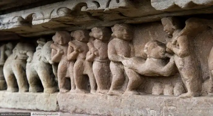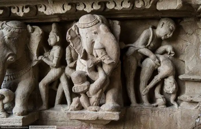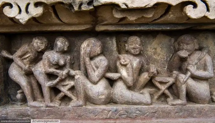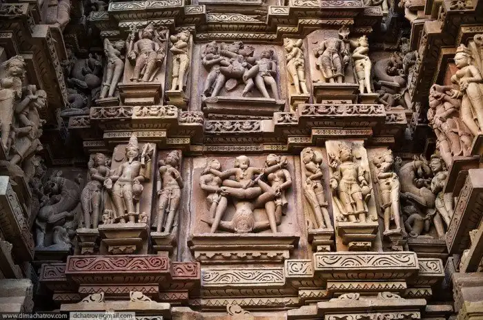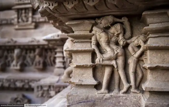 Истинной причины повышенному вниманию зодчих к этой теме мы не знаем. Как бы то ни было, на фасадах храмов, построенных из песчаника и гранита, до нас дошли искусно вырезанные барельефы с изображением различных сцен из половой и около-половой жизни.