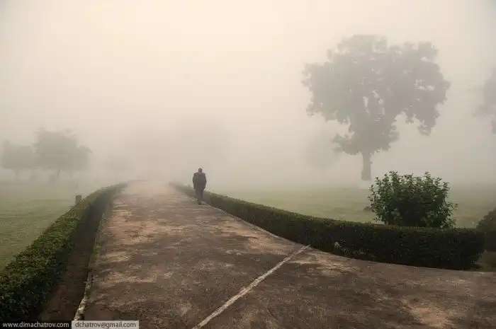 Чтобы немного скрасить впечатление от искусства, вот несколько общих планов с южной части комплекса. Ранее утро, плотный, густой туман: