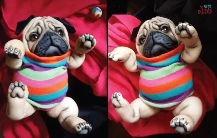 Любови Мошак пишут множество приятных слов и тёплых комментариев, а её работами восхищаются не только дети, а и взрослые, которые с первого взгляда буквально влюбляются в очаровательных мопсов, которых так и хочется потискать, уж больно они хороши собой. Симпатичные щеночки настолько реалистичны, что с трудом верится в то, что все они сделаны из самых обычных капроновых колготок, поэтому их очень сложно отличить от настоящих, особенно глядя на фотографии. И совсем неудивительно, ведь талантливая мастерица чаще всего создаёт их по снимкам с реальными мопсами, чьи хозяева мечтают заполучить ещё и маленькую реалистичную копию своего питомца.
