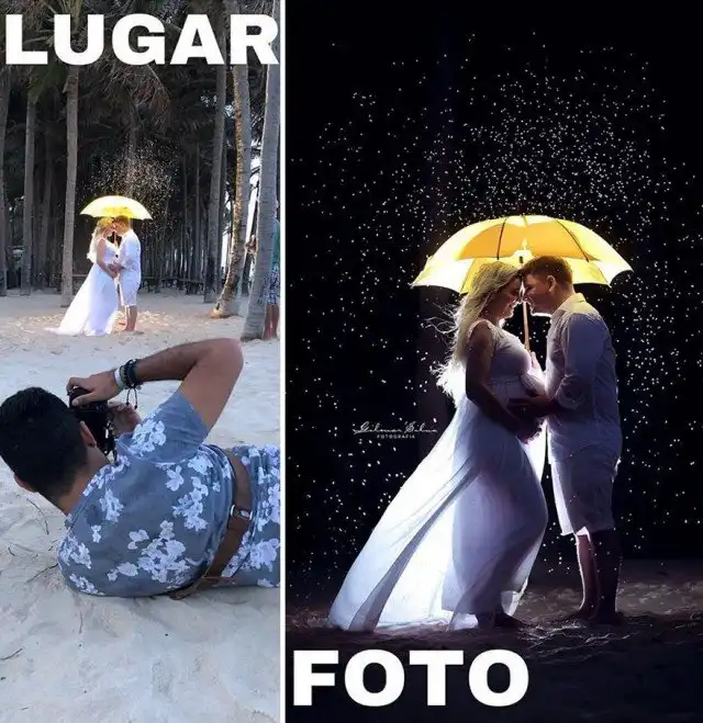 Некоторое время назад этот профессиональный свадебный и семейный фотограф начал блестящую серию, которую он назвал LUGARxPHOTO («Место и фотография»), которая показывает закулисье профессиональных фотосессий. Первая фотография всегда показывает «рабочую среду» фотографа, а вторая показывает конечный результат,в который иногда трудно поверить. Цель проекта - рассказать не только о размере Photoshop, который входит в игру, но и проанализировать правильные углы и методы, которые используются для получения этих идеальных снимков.