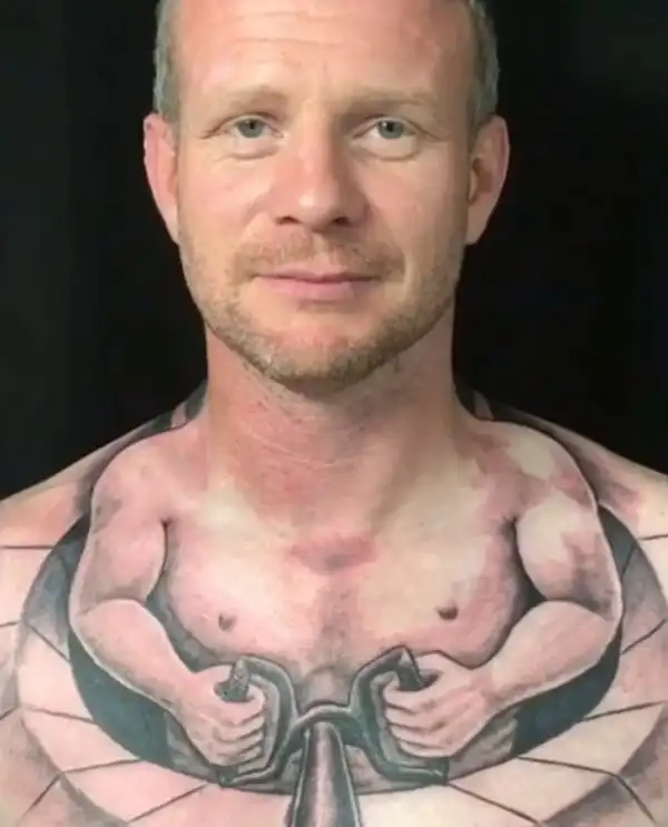 Теоретически, он мог бы даже работать в банке с такой татуировкой