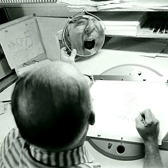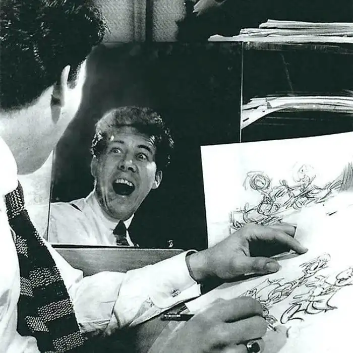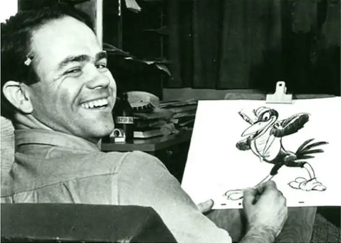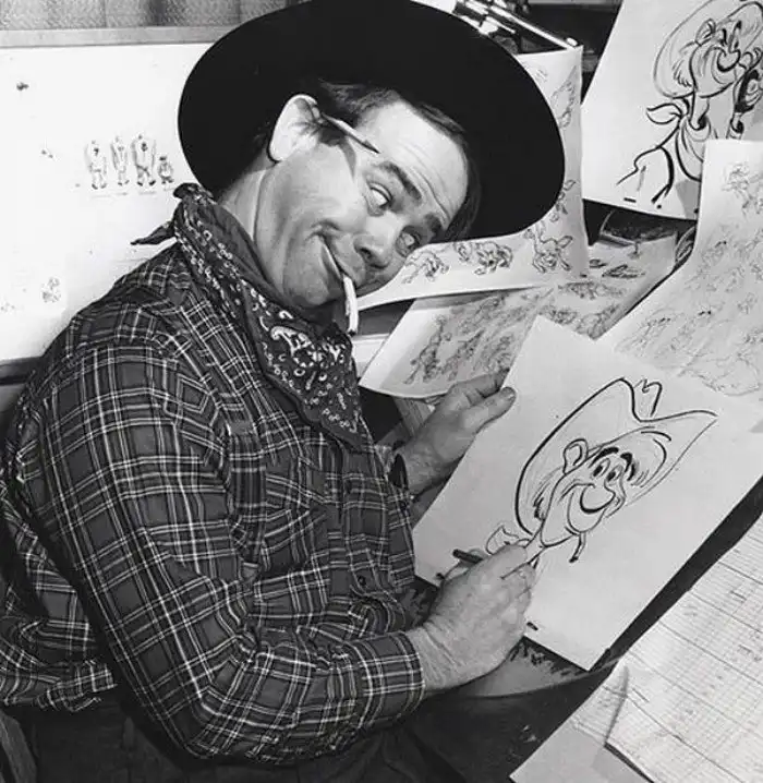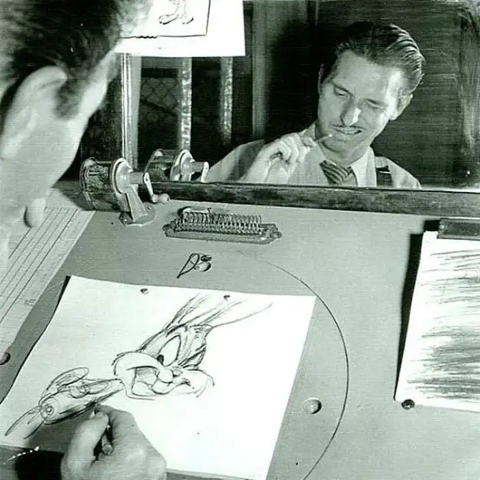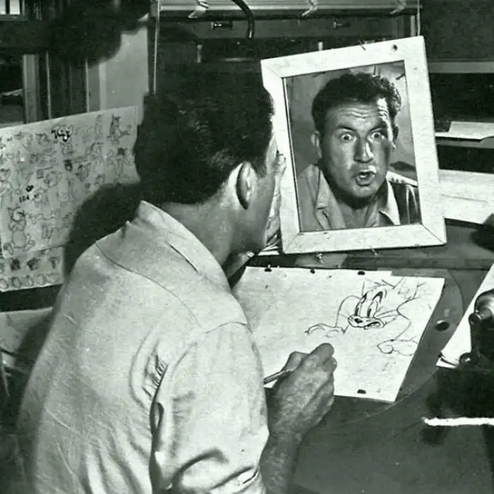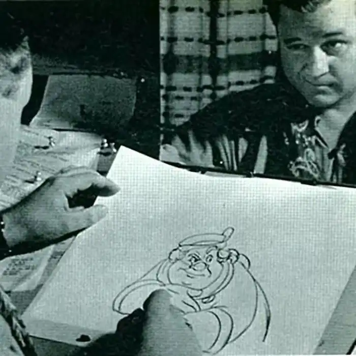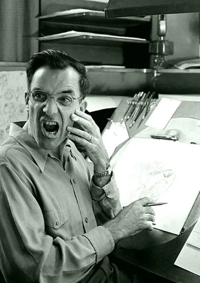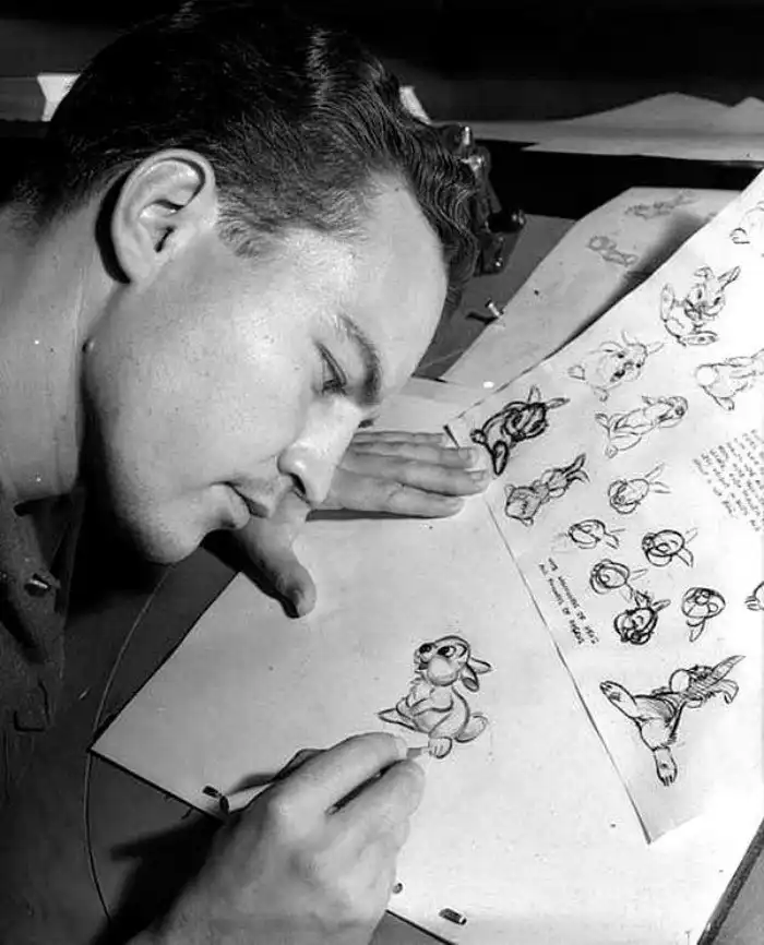 Фрэнк Джонсон работает над рисунком из «Леди и бродяга», Бербанк, Калифорния, 1953
