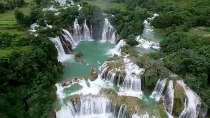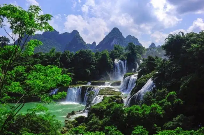 Водопад Дэтянь — захватывающее чудо природы в Азии. Близнецы-водопады на реке Квай Сон почти идеально расположены на китайско-вьетнамской границе. Половина водопадов находится в карстовых горах округа Дасинь в Гуанси (Китай), а другая половина — в районе Трунг Кхань, провинция Цао Банг (Вьетнам).