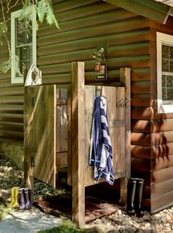 9. Наиболее комфортный вариант - это делать душевую у дома, тогда все коммуникации можно вывести из жилого помещения