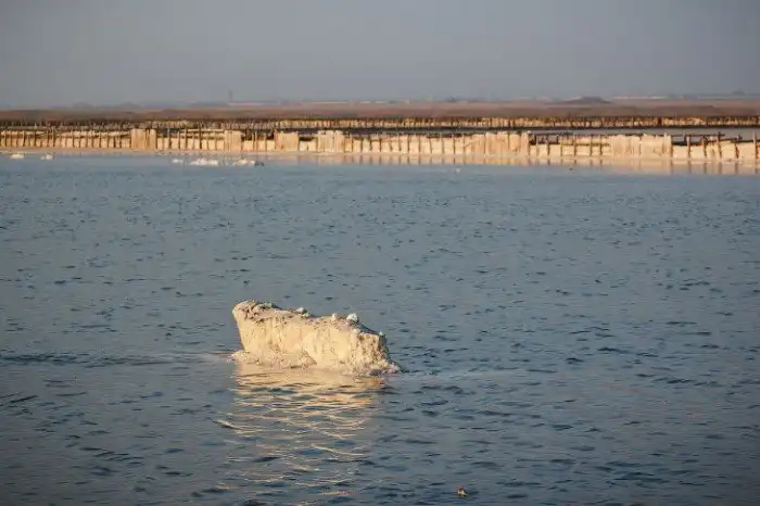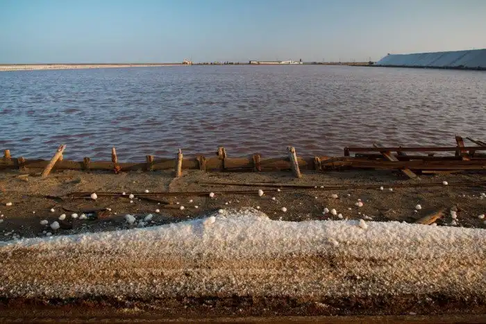 Затем, уже подготовленную рапу перекачивают в основной производственный бассейн, где летом под действием палящего солнца и сильного ветра вода испарится, а на дне образуется тот самый красноватый слой соли, толщиной от 4 до 12 сантиметров.