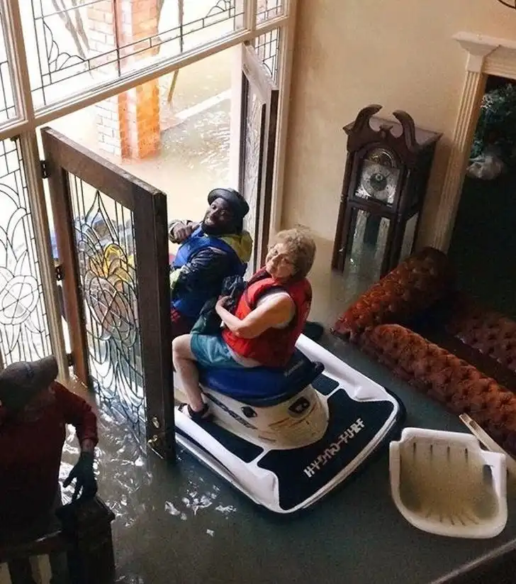 Ничего необычного, просто бабушка друга выезжает из гостиной на водном скутере