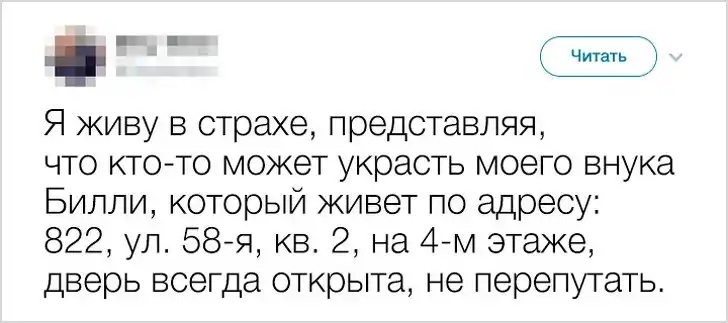 «Пожалуйста, прекратите молиться за здоровье моего деда! Вы делаете его слишком сильным. Он вырвался из больницы, и даже копы не могут его поймать: он слишком могущественный»