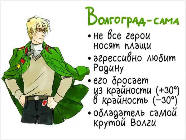 Художница Екатерина, родом из Екатеринбурга, под псевдонимом MagnieMakoyana выложила у себя в твиттере изображения некоторых российских городов в образе героев аниме. Для каждого населенного пункта девушка не только придумала образ, но и очертила собственный характер. Ее рисунки быстро разлетелись по сети, ведь на таких персонажей и правда интересно взглянуть.