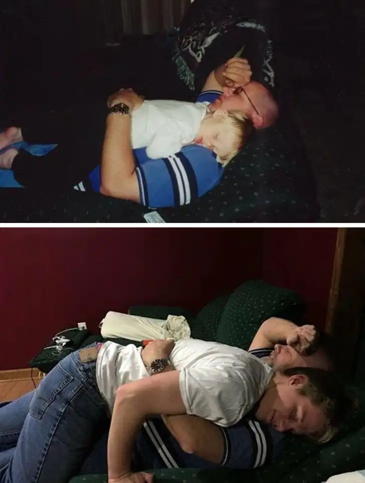 «Я и мой сын. Разница в 16 лет, тот же плед, тот же диван»