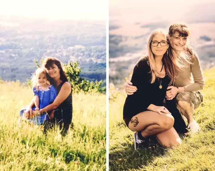«Спустя 10 лет мы с мамой сделали такое же фото на той же горе»