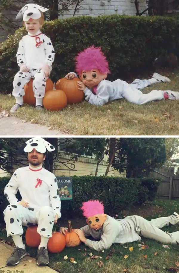 «Чтобы отметить 25-летие с момента создания старого фото, в этот Хеллоуин мы надели такие же костюмы и сфотографировались»