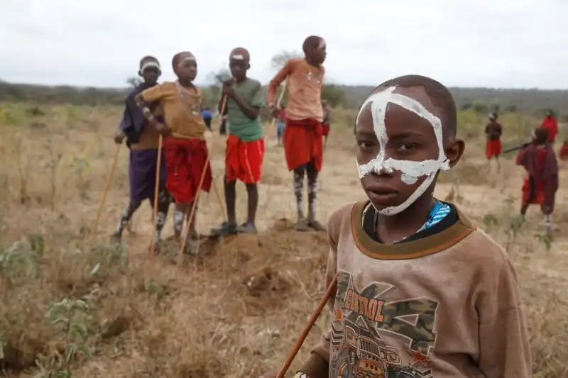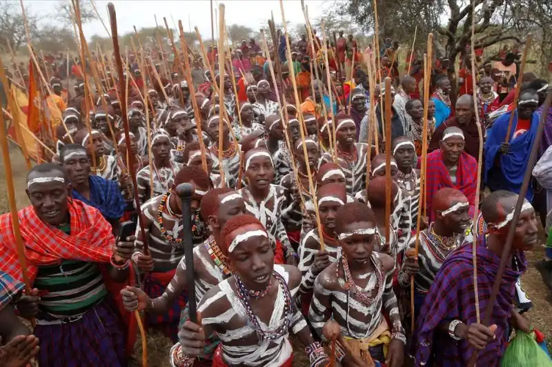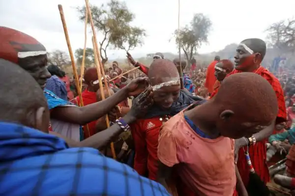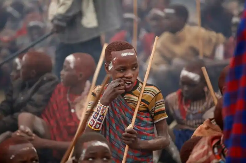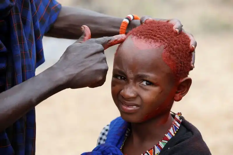 Недавно в поселении Бизил, Кения, прошел обряд посвящения мальчиков племени масаи в мужчины. В конце августа тысячи разукрашенных охрой африканских мальчишек получили благословение, когда их обрызгали молоком и пивом, отведали мясо и сердце жертвенного быка, получили кольцо из бычьей кожи и сфотографировались с семьей на память.