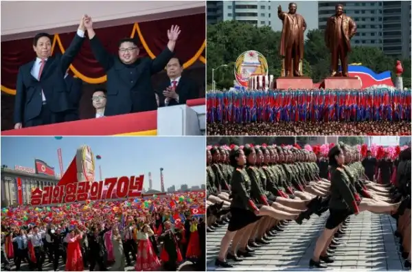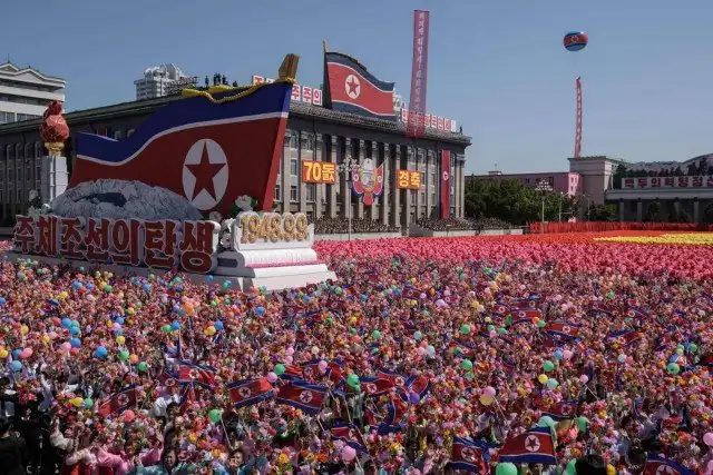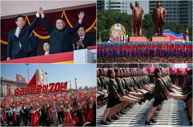 9 сентября в Пхеньяне прошел торжественный парад в честь 70-летия образования Корейской Народно-Демократической Республики. На параде присутствовал глава КНДР Ким Чен Ын. На трибуне для почетных гостей были замечены спикер Совета Федерации России Валентина Матвиенко и актер Жерар Депардье. На параде демонстрировалась военная техника, солдаты в современном обмундировании, также состоялось гражданское шествие с выражением поддержки главе страны. По площади прошли студенты, школьники, сотрудники предприятий КНДР, которые несли цветы Ким Ир Сена — кимирсения, и Ким Чен Ира — кимченирия.