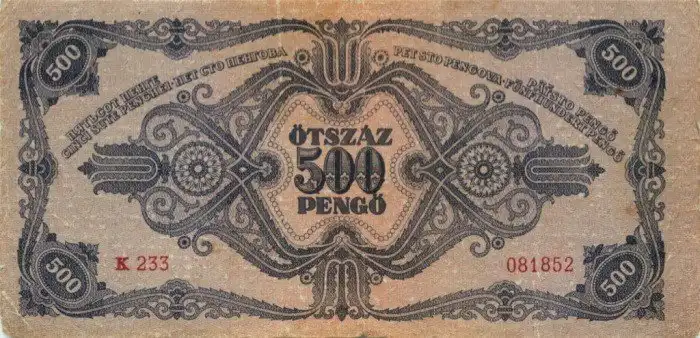За Первой мировой войной случилась Вторая мировая война. Европа, ставшая основным театром боевых действий, лежала в руинах. Рухнувшая экономика не способствовала укреплению венгерской валюты. Уже в 1944 году за 1 доллар давали не 5, а 33 пенгё. Советский Союз, который по договору с Венгрией в последствии получил право на эмиссию военных денежных знаков страны, пытался исправить ситуацию, однако уже к 1946 году правительство выпустило ситуацию из-под контроля, и денежная единица рухнула с ужасающей скоростью.
