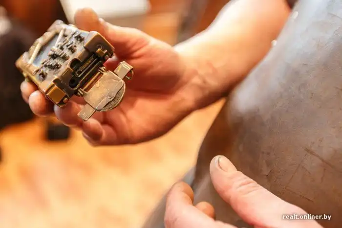 Большие круглые очки в медной оправе, медный браслет на руке, телефон в медном корпусе, представляющий собой удивительную конструкцию из кнопок и рычажков, — об увлечении стимпанком в облике Дмитрия Тихоненко говорит многое. Правда, сам мастер о модном направлении узнал уже после того, как создал многие свои работы из меди.