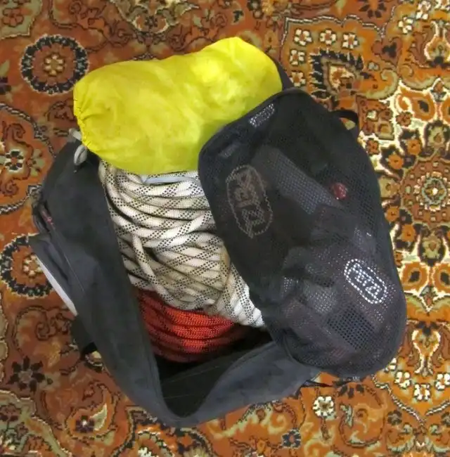 Все просто: пара веревок, беседок, жумаров и спусковух, карабинов и спасательная косынка, если потребуется кому-то особая помощь.