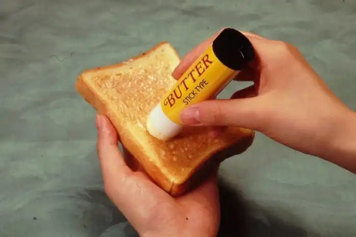 В Японии решили, что нарезать масло ножом и размазывать его по хлебу слишком сложно. Поэтому здесь упаковали продукт в карандаш, подобный тому, который делают для клея.