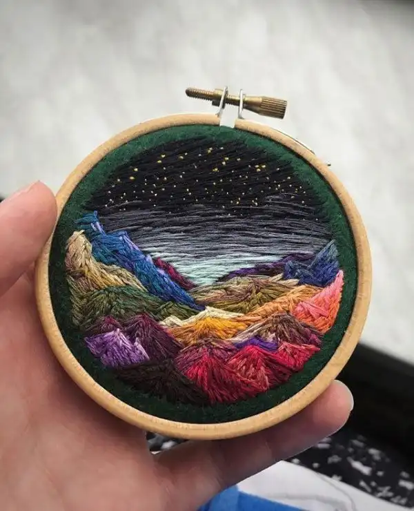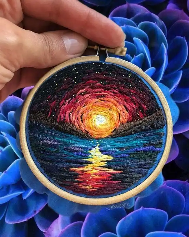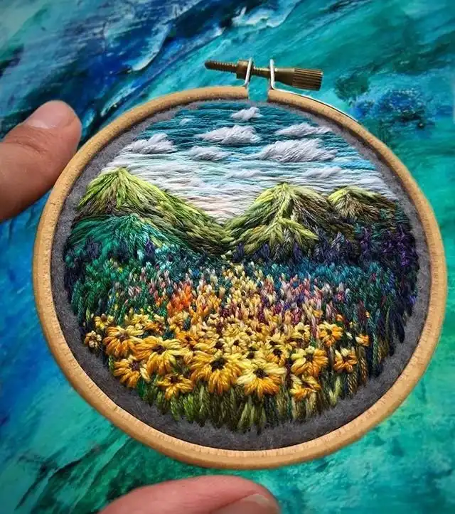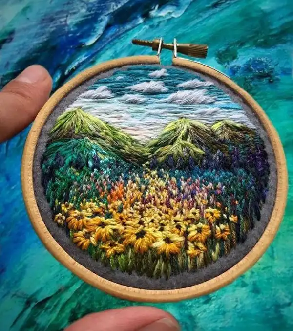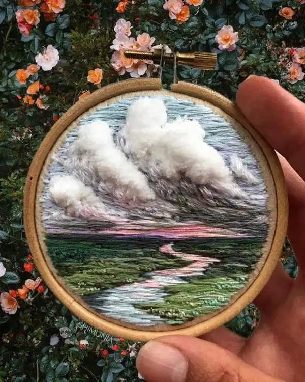 Вера Шимуния из Санкт-Петербурга не просто талантливая вышивальщица, а еще и художница. Она кропотливо вышивает на пяльцах миниатюрные пейзажи, поразившие ее в путешествиях или возникающие в ее воображении. Получается очень годно.