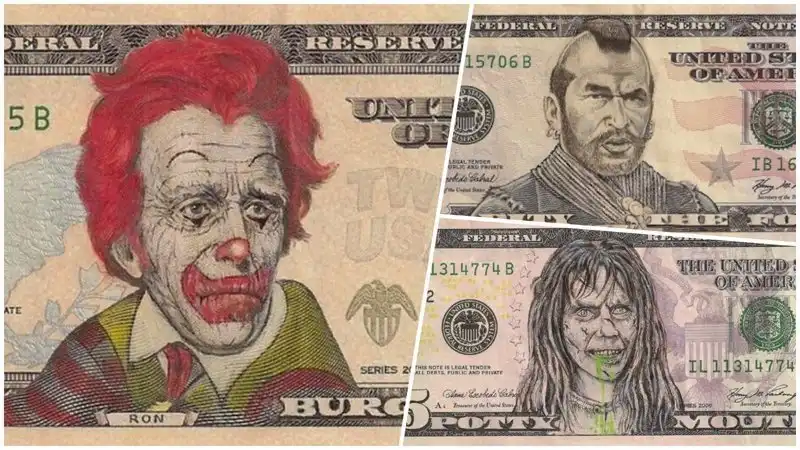 Вообще, рисовать на деньгах, конечно, не очень хорошо, а в некоторых странах так и вовсе незаконно. И тем не менее, стоит признать, что те самые «зелёные бумажки», которые давно хорошо известны во всём мире, уже порядком поднадоели. Вот художники и упражняются в креативности, разрисовывая доллары и изображая на них разных известных людей.