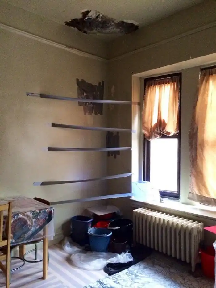 В старых домах, где давно не делали ремонт, не меняли кровлю и прочее - вода в сильный ливень может бежать отовсюду