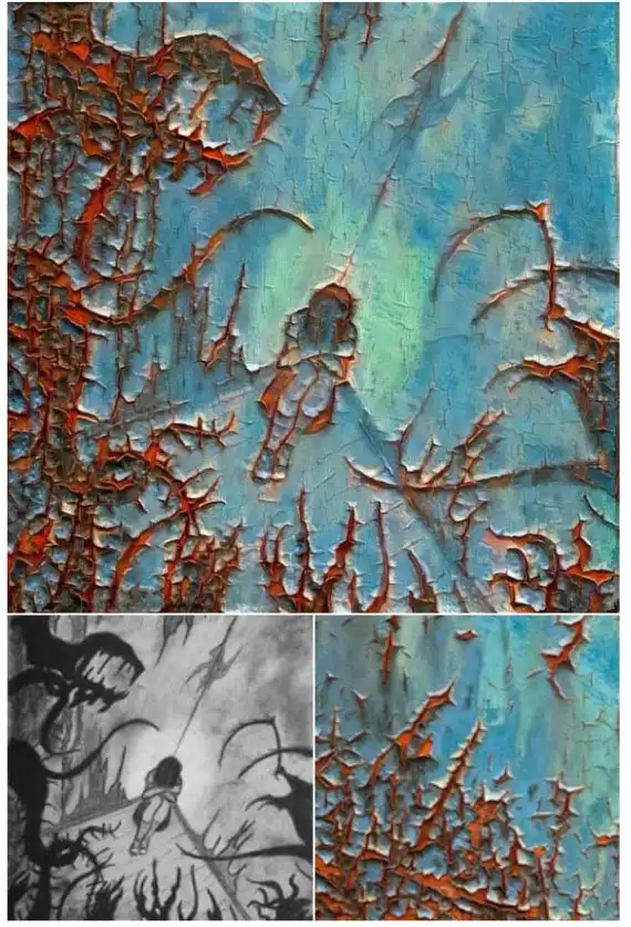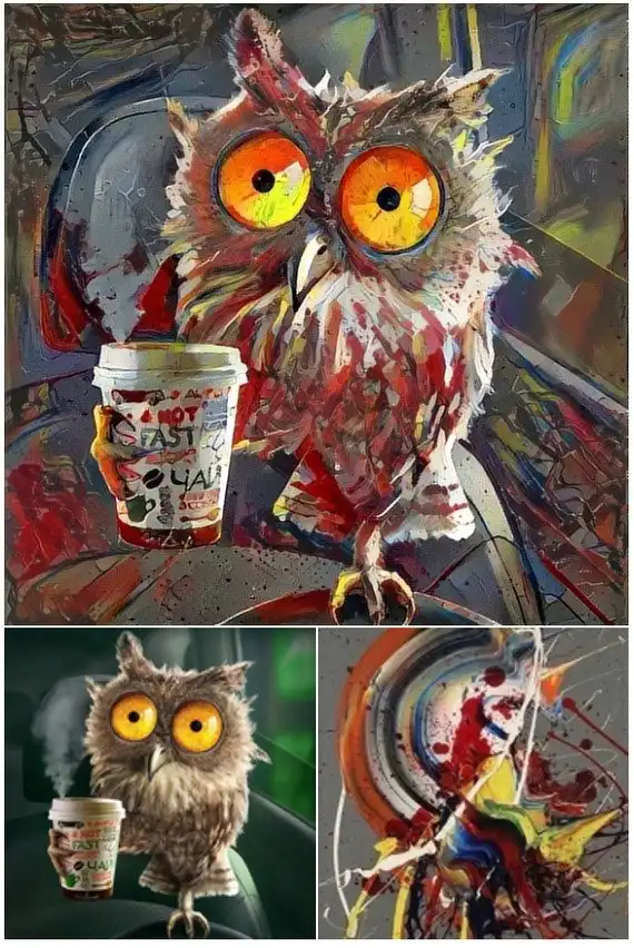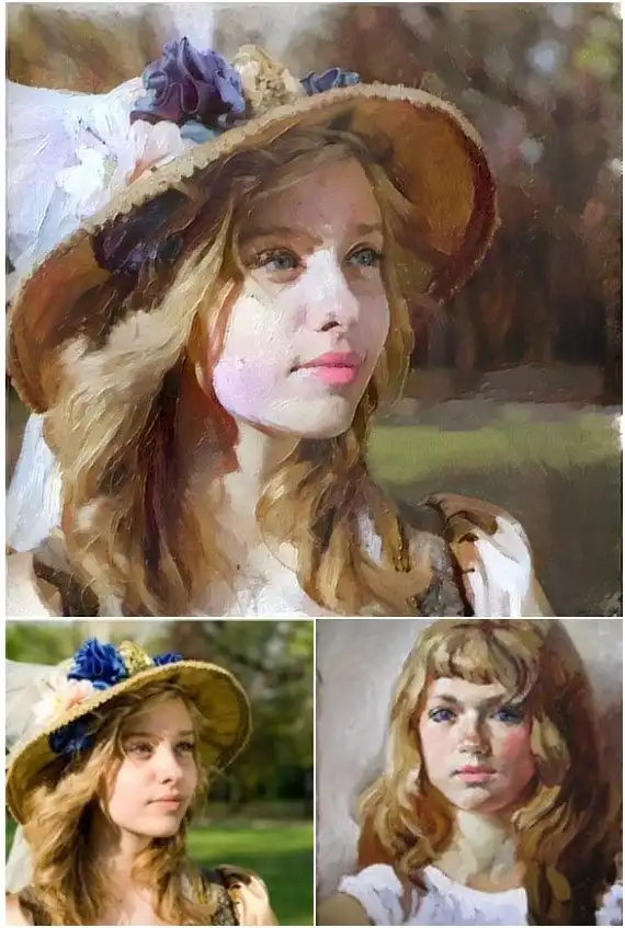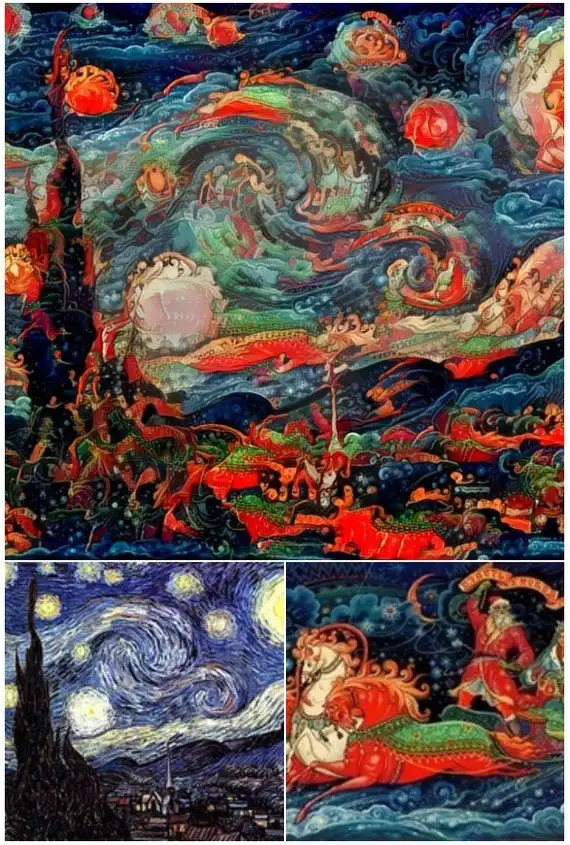 Крупная картинка - финальное изображение, которое создает нейросеть из двух небольших картинок ниже.