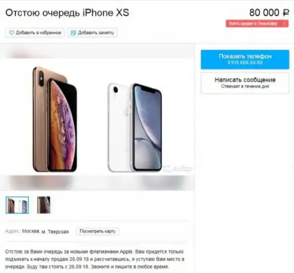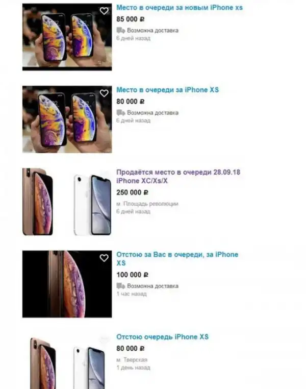 Перед стартом продаж новых моделей iPhone в России (28 сентября) на сайтах объявлений начали появляться странные объявления, в которых люди готовы продать за дурные деньги место в очереди или просто отстоять за кого-то в очереди, чтобы получить заветный iPhone одним из первых.