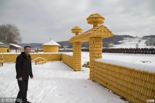 На северо-востоке Китая есть деревня под названием Эрхэ, где принято строить жилища из весьма необычного материала, который является очень традиционным для здешних мест. Для строительства было использовано более 20 тысяч початков кукурузы, чтобы выстроить сам дом, забор, колодец и некоторые другие декоративные элементы во дворе.