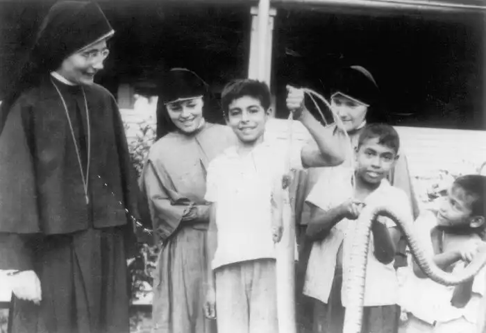 "Купи? — мамочку позабавить. За пинжачок отдам." ) Дети демонстрируют монахиням убитую змею. Сальвадор, 1980 год.