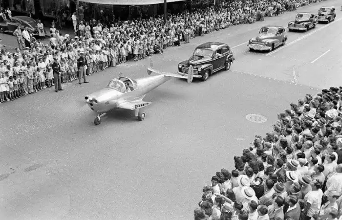 На параде с обрезанными крыльями (чтоб не улетел). Хьюстон, США, 1946.
