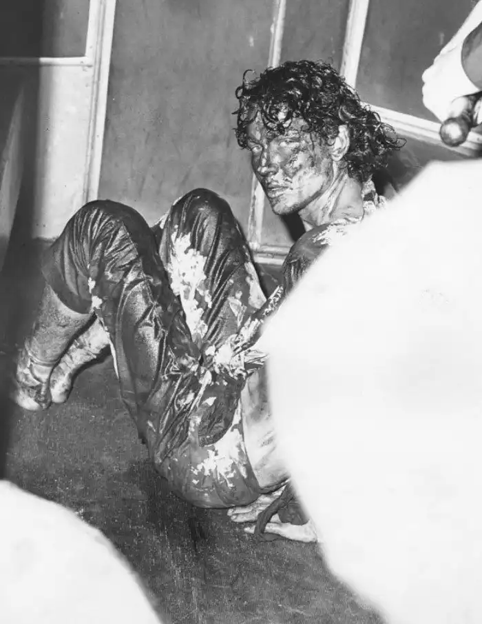9 июля 1968 года, Лос-Анджелес. Парень вылил на себя ведро крови в знак протеста против призыва на военную службу.