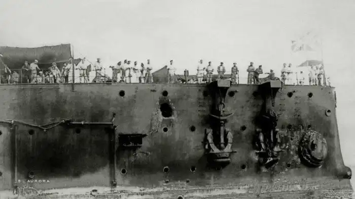 Крейсер «Аврора» после Цусимского сражения, 1905 год.
