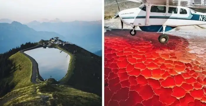1. Озеро Натрон покрыто коркой соли, которая появляется из-за микроорганизмов, живущих там