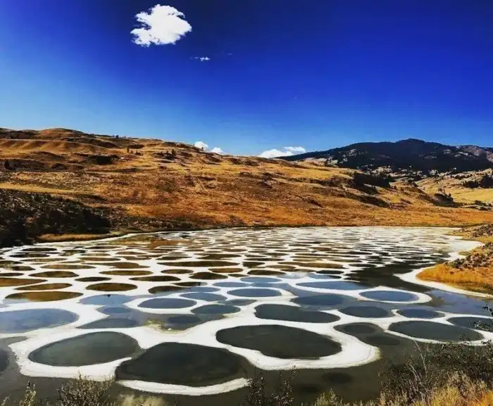 5. Озеро Споттед-Лейк полно минеральных веществ, которые летом образуют «дорожки» между кругами воды