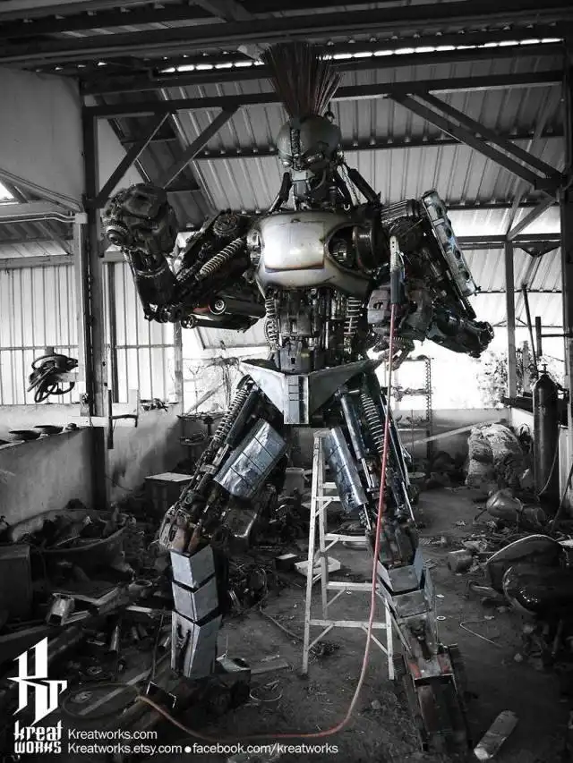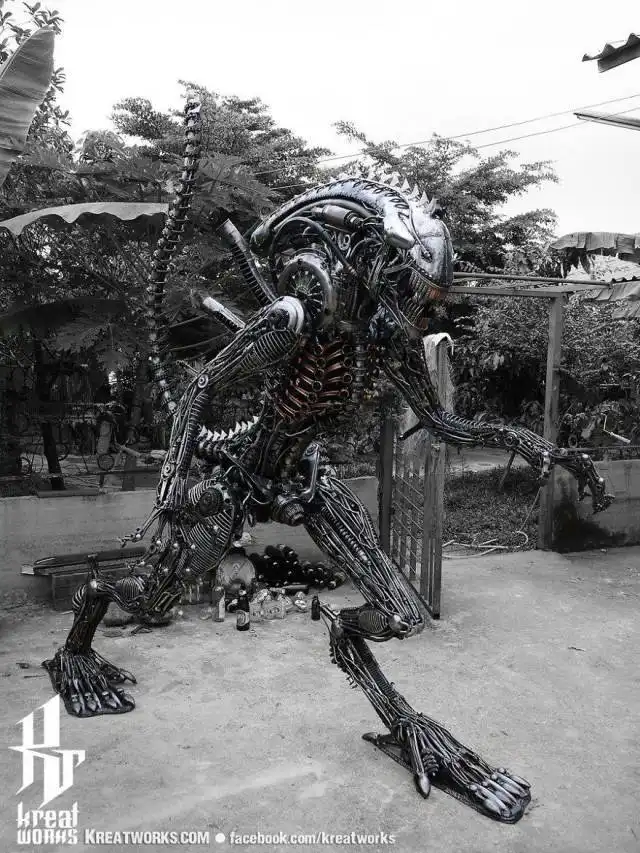 Мастер из Таиланда уже на протяжении последних 12 лет делает из металла удивительные стимпанк-скульптуры на любой вкус. Он берет детали от разбитых машин, мотоциклов и другой техники, чтобы создавать необычные произведения искусства, на которые вам будет интересно посмотреть. По словам автора, на каждую подобную работу у него уходит в среднем около двух месяцев, ведь занимается он этим только на досуге.
