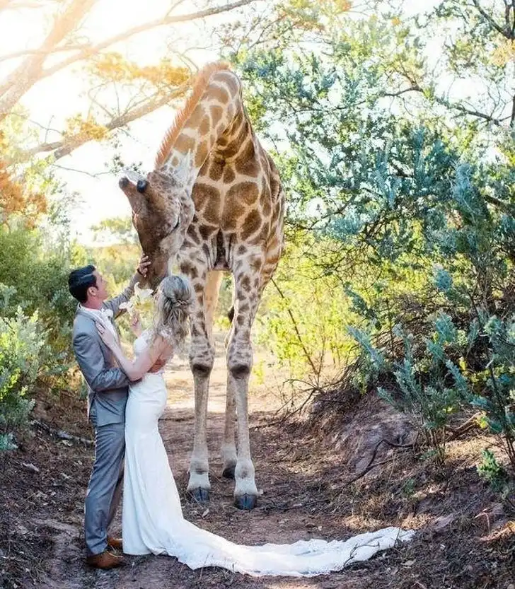Жираф решил превратить обычный свадебный снимок в фотобомбу