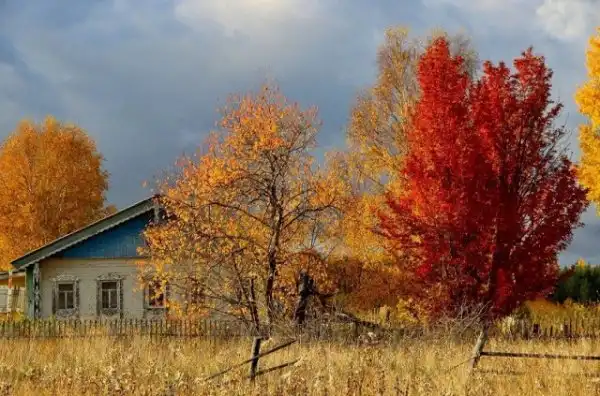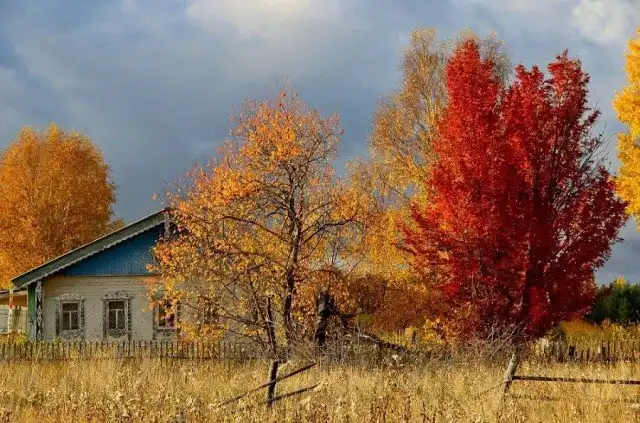 Осень в деревне чувствуется гораздо сильнее, чем в городе и контраст с летом – разительнее. Деревня - часть природы и живет по ее законам. В деревне – это особые запахи: грибов, прелой травы, созревших яблок в корзине; особых звуков: курлыканья улетающего каравана журавлей, лая собак на окраине деревни и дождя по крыше…