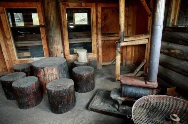 Это строение построил Фрэнсис Ли Смит, который фактически получил неограниченный доступ к бесплатной древесине после пожара на близлежащей горе "Гремучая Змея". Власти разрешили всем желающим забрать поврежденную пожаром древесину, чтобы очистить гору.