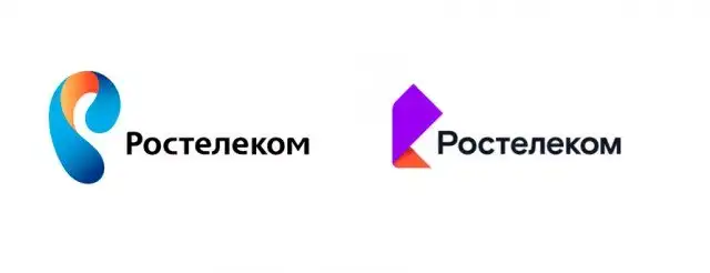 Ранее логотип «Ростелекома» представлял из себя стилизованную букву «Р», напоминающую ухо, сине-оранжевого цвета. Новый логотип — две геометрические фигуры фиолетового и оранжевого цветов, напоминающие сложенную ленту.