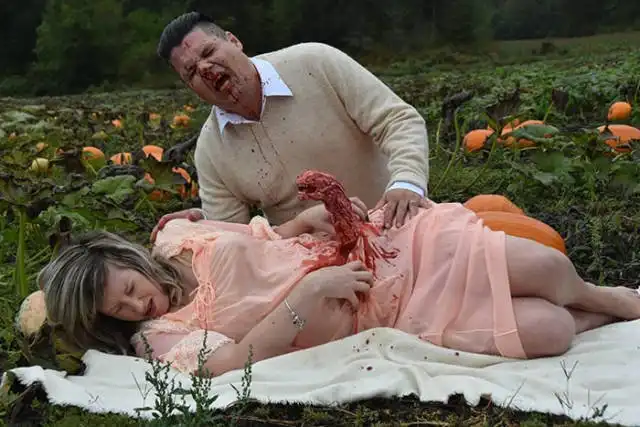 Одна семейная пара наняла фотографа, чтобы сделать фотосессию незадолго до родов. Все начиналось отлично, но такого поворота событий, мы точно не ожидали. Сразу хотелось бы предупредить, что фото далее не для слабонервных, хотя фанаты хоррора точно оценят по достоинству такой креативный подход.