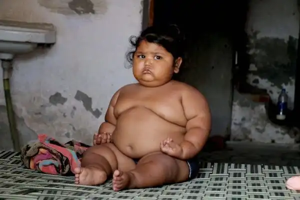 В свои год и четыре месяца девочка из Индии, Чахат Кумар, весит ошеломляющие 25 кг, из-за чего даже не может встать и удержаться на ногах. Причина ее недуга кроется в генной мутации - укорачивании молекулы лептина и нарушении ее структуры. Из-за дефицита данного гормона Чахат терзает постоянное чувство голода, и она набирает вес.